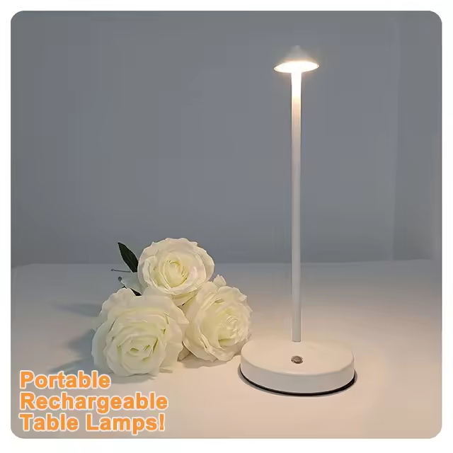 A sleek, battery-operated LED lamp delivering soft, adjustable lighting — perfect for bedrooms, living rooms, hotel suites, cafés, and any space demanding cozy ambiance or flexible portable lighting.