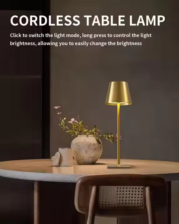The VOOSEI Golden Cordless Table Lamp (K23CTL-7) delivers premium wireless lighting with a decorative golden finish that enhances any interior. Its cordless rechargeable design allows flexible installation without limits, while the warm LED lighting produces a cozy and elegant glow.